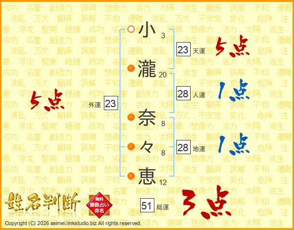 小瀧奈々恵さんの総運は51画の3点!