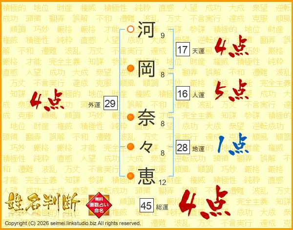 河岡奈々恵さんの総運は45画の4点!