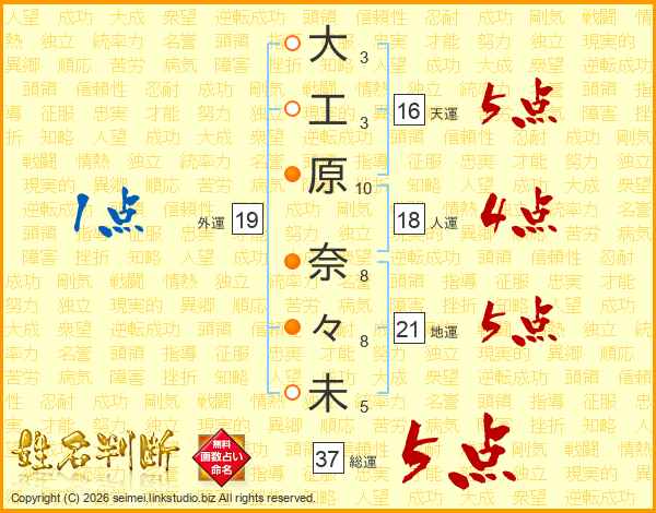 大工原奈々未さんの総運は37画の5点!