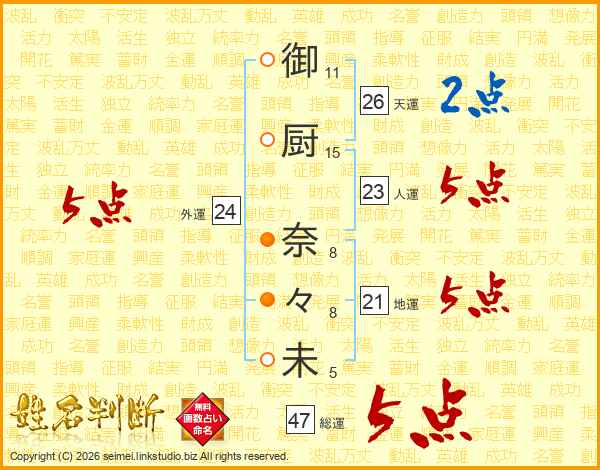 御厨奈々未さんの総運は47画の5点!