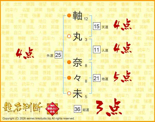 軸丸奈々未さんの総運は36画の3点!