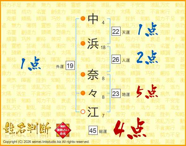 中浜奈々江さんの総運は45画の4点!