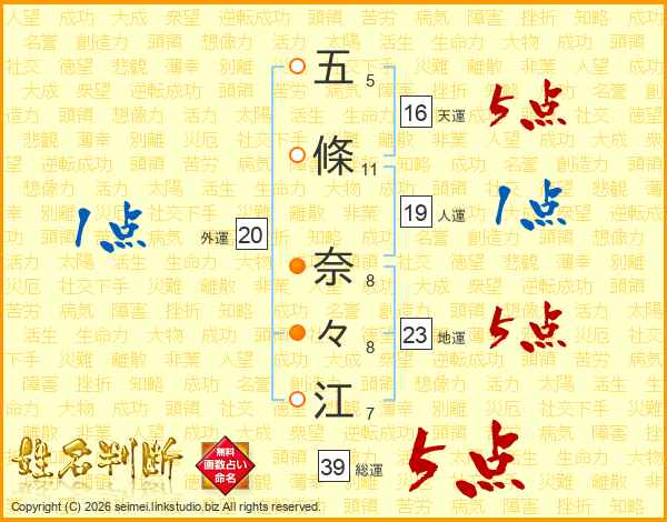 五條奈々江さんの総運は39画の5点!