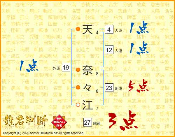 天奈々江さんの総運は27画の3点!