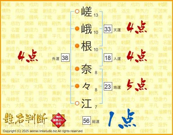 嵯(13画)峨(10画)根(10画) 奈(8画)々(8画)江(7画)