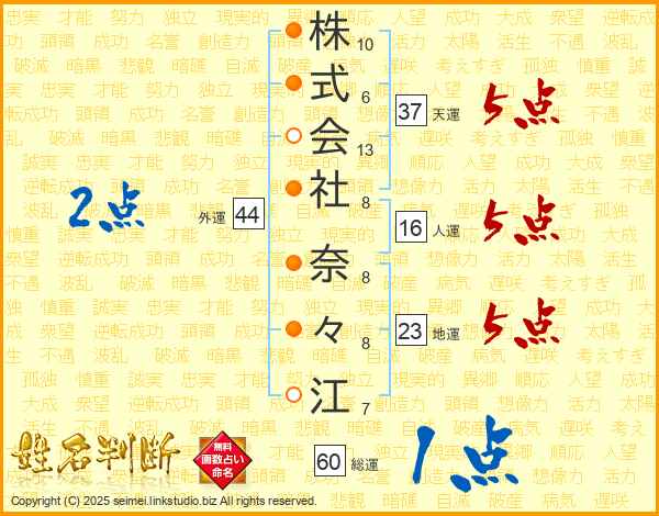 株式会社奈々江さんの外運は44画の2点!