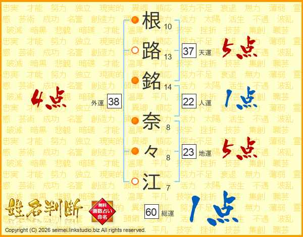 根路銘奈々江さんの天運は37画の5点!