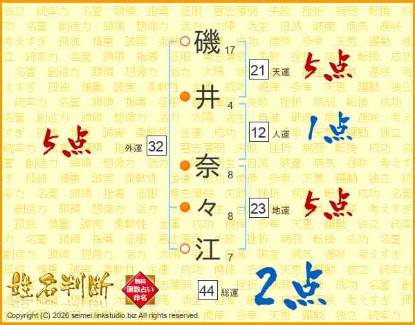 磯井奈々江さんの外運は32画の5点!