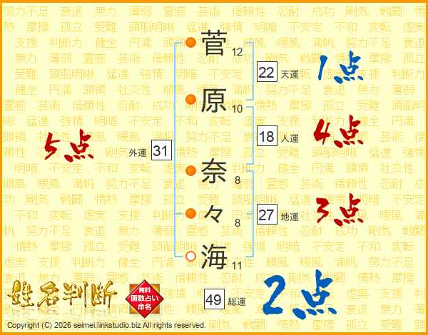 菅原奈々海さんの総運は49画の2点!
