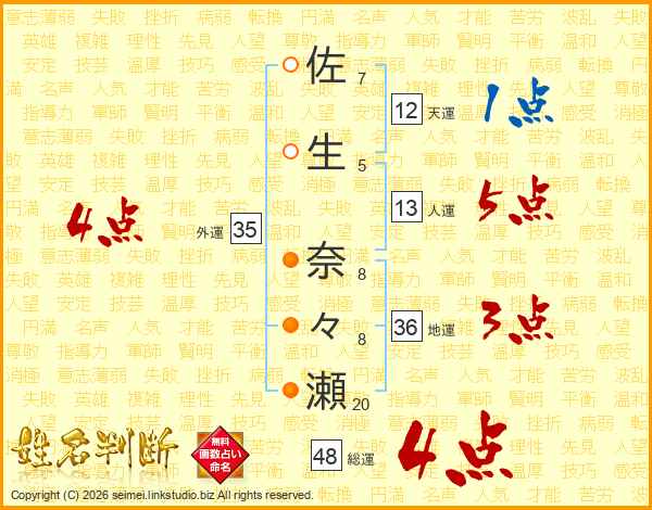 佐生奈々瀬さんの総運は48画の4点!