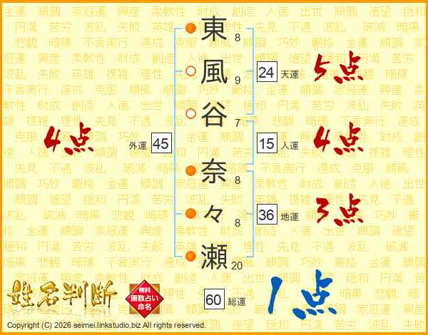 東風谷奈々瀬さんの天運は24画の5点!