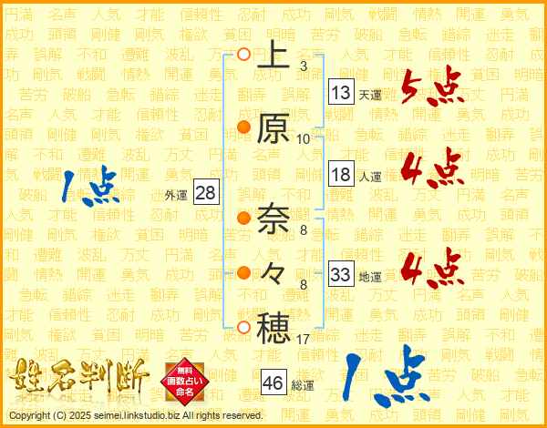 上原奈々穂さんの総運は46画の1点!