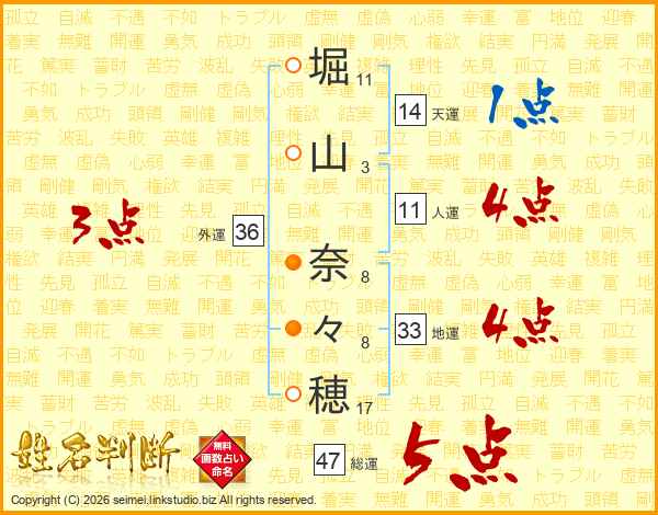 堀山奈々穂さんの総運は47画の5点!