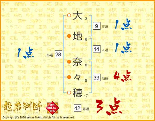 大(3画)地(6画) 奈(8画)々(8画)穂(17画)