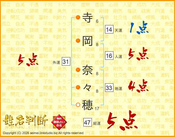 寺岡奈々穂さんの総運は47画の5点!