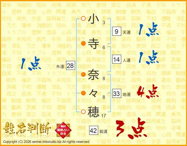 小寺奈々穂さんの総運は42画の3点!