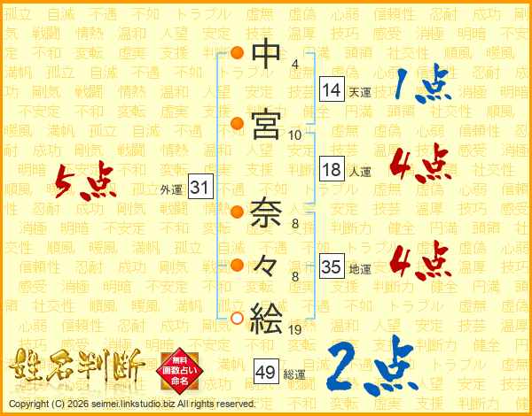 中宮奈々絵さんの総運は49画の2点!