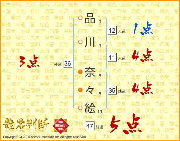 品川奈々絵さんの総運は47画の5点!