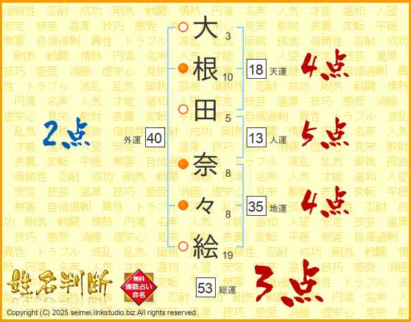 大根田奈々絵さんの天運は18画の4点!