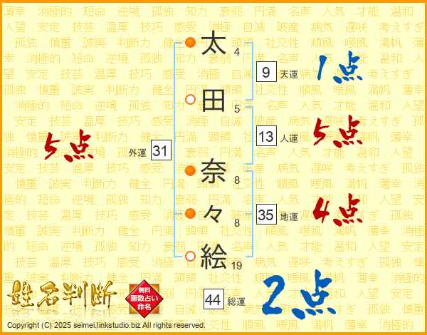 太田奈々絵さんの人運は13画の5点!
