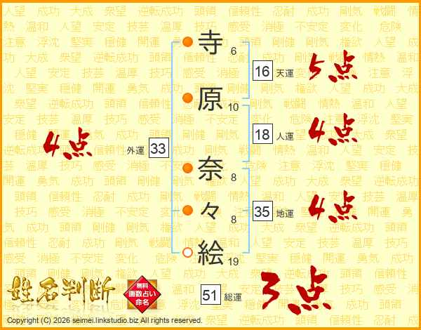 寺原奈々絵さんの外運は33画の4点!