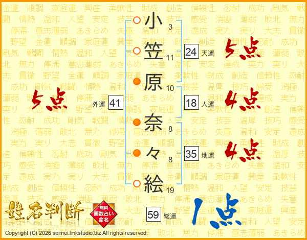 小(3画)笠(11画)原(10画) 奈(8画)々(8画)絵(19画)