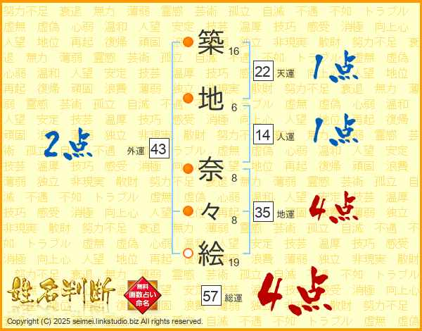 築地奈々絵さんの総運は57画の4点!