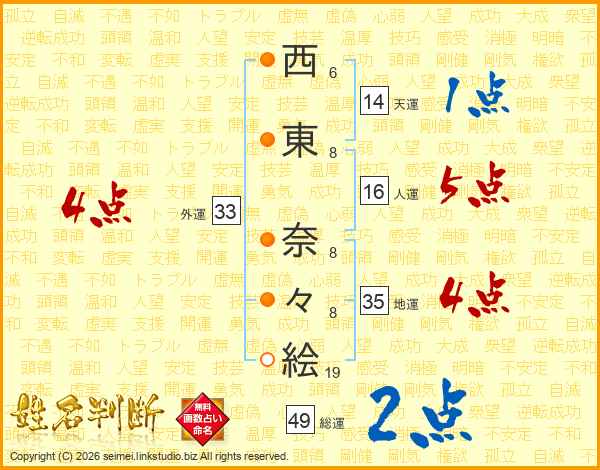 西東奈々絵さんの外運は33画の4点!
