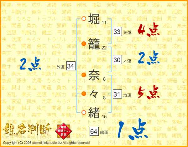 堀籠奈々緒さんの外運は34画の2点!