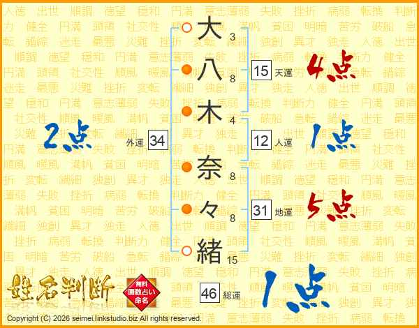 大八木奈々緒さんの外運は34画の2点!