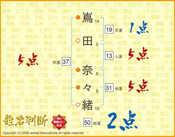 嶌田奈々緒さんの外運は37画の5点!