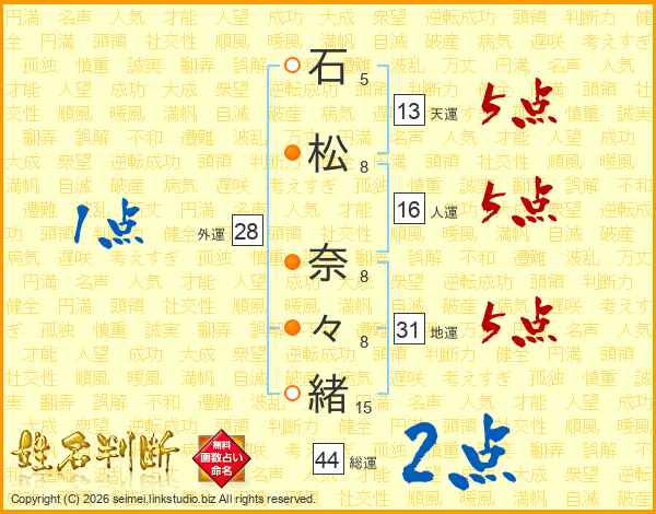 石松奈々緒さんの地運は31画の5点!