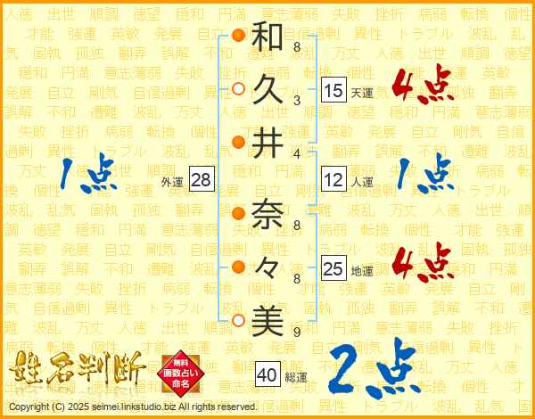 和(8画)久(3画)井(4画) 奈(8画)々(8画)美(9画)