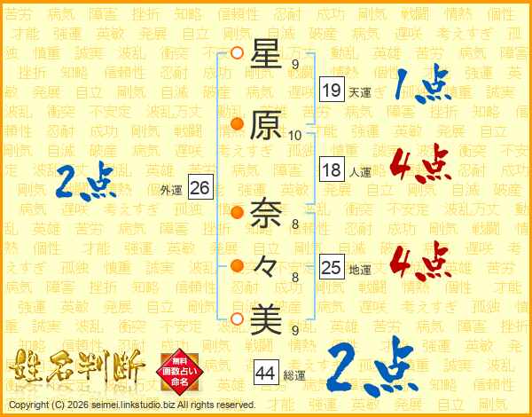 星(9画)原(10画) 奈(8画)々(8画)美(9画)