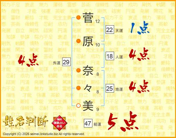 菅原奈々美さんの総運は47画の5点!