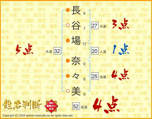 長谷場奈々美さんの外運は32画の5点!