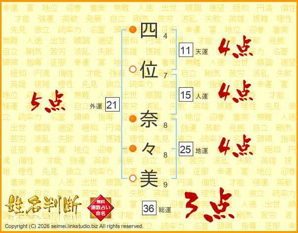四位奈々美さんの地運は25画の4点!
