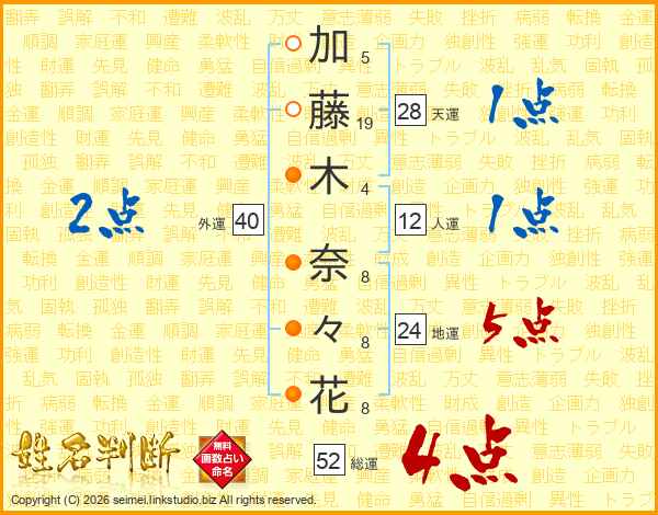 加藤木奈々花さんの総運は52画の4点!
