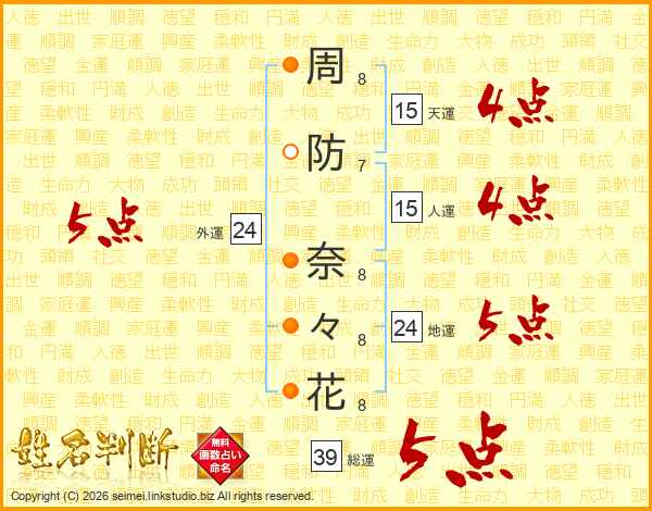周防奈々花さんの総運は39画の5点!