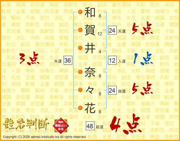 和賀井奈々花さんの総運は48画の4点!