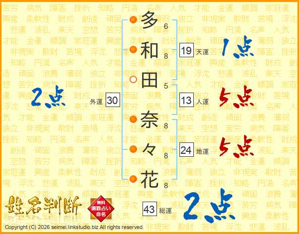 多和田奈々花さんの総運は43画の2点!