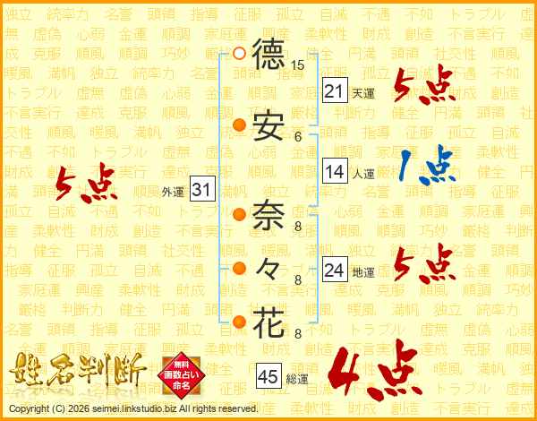 德安奈々花さんの総運は45画の4点!