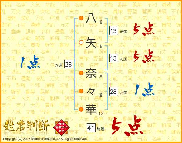 八矢奈々華さんの総運は41画の5点!