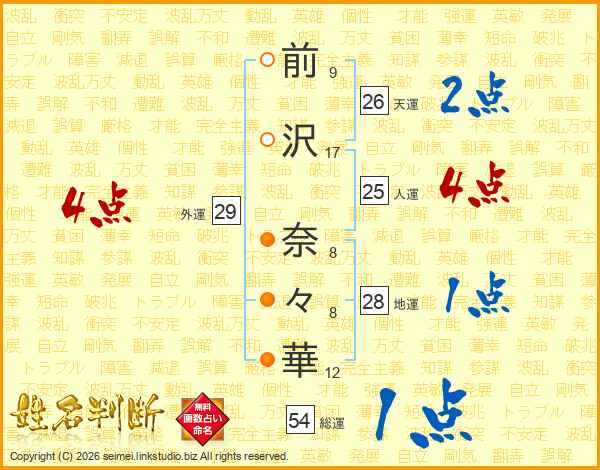 前(9画)沢(17画) 奈(8画)々(8画)華(12画)