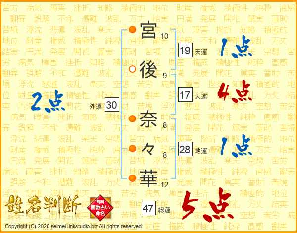 宮後奈々華さんの総運は47画の5点!