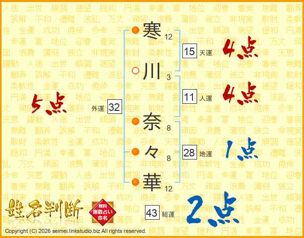 寒川奈々華さんの外運は32画の5点!