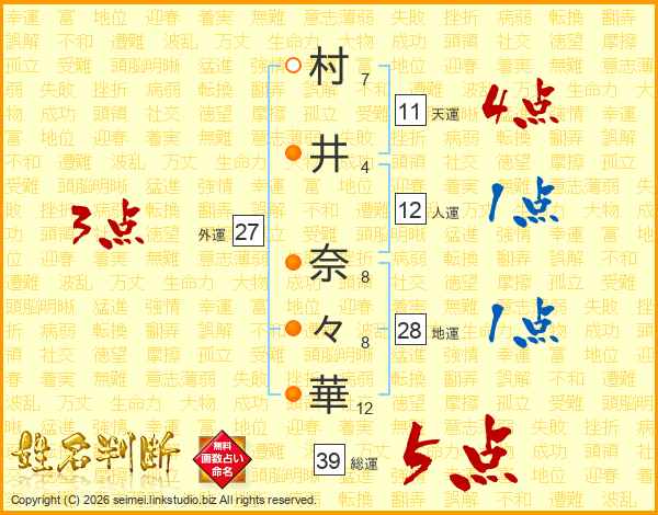 村井奈々華さんの総運は39画の5点!