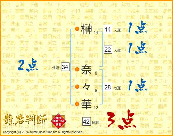 榊奈々華さんの天運は14画の1点!