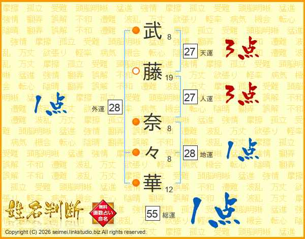 武(8画)藤(19画) 奈(8画)々(8画)華(12画)