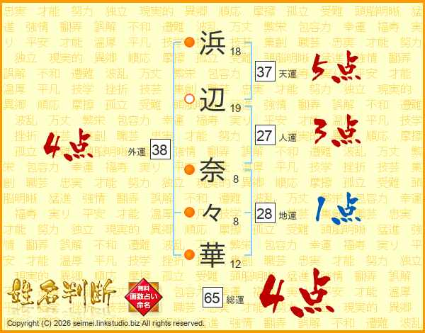 浜辺奈々華さんの総運は65画の4点!